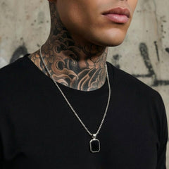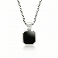 This pendant is crafted as a focal point of unwavering intent. The natural Black Onyx stone—a symbol of focused clarity, grounding, and protective strength—is set within a solid 925 sterling silver frame, rhodium plated for a bright, enduring contrast. Designed with a secure jump ring for easy attachment to your chosen chain.