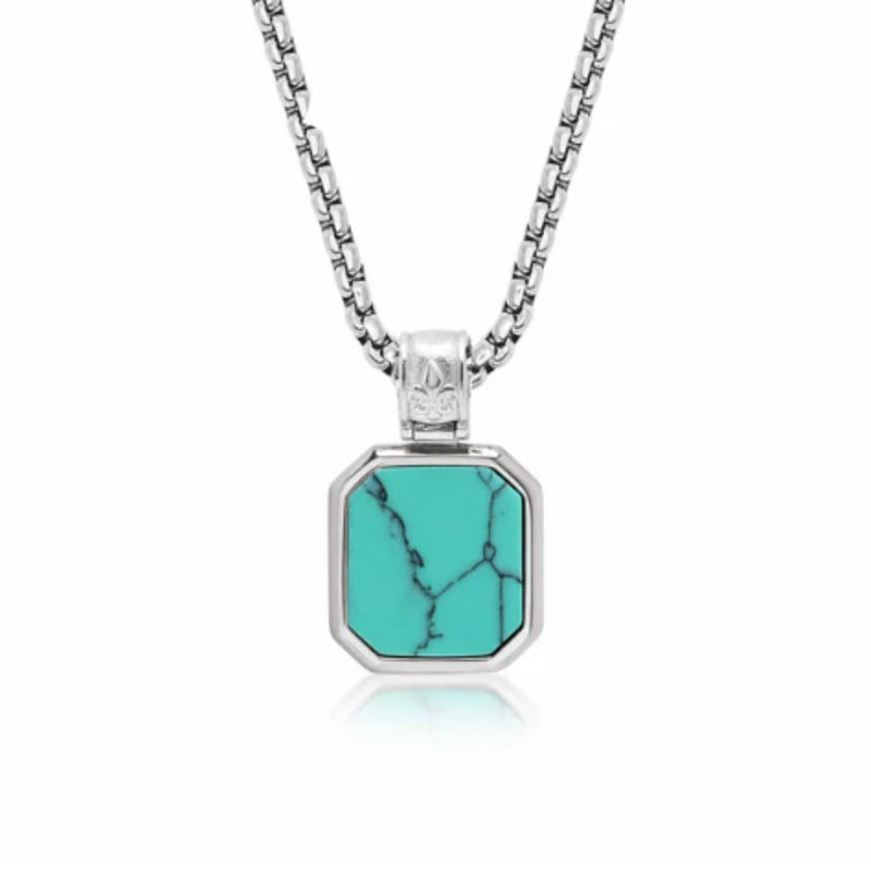 This charm is crafted from solid 925 sterling silver, featuring a Turquoise with ash grey veins natural stone as its central focus, polished to a high lustre for a vibrant pop of colour.