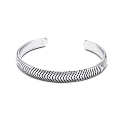 Continuous V-Shaped Engraving: A defined, directional pattern.