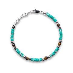 African Turquoise & Tiger Eye Heishi Lobster Bracelet | 925 Sterling Silver | SHADAE Collection