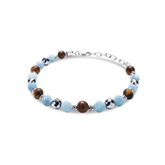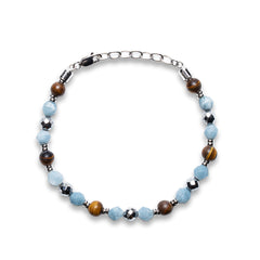 Aquamarine & Tiger Eye Heishi Lobster Bracelet | 925 Sterling Silver | SHADAE Collection
