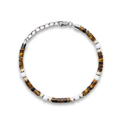 Tiger Eye, Cream Jade & Howlite Heishi Lobster Bracelet | 925 Sterling Silver | SHADAE Collection